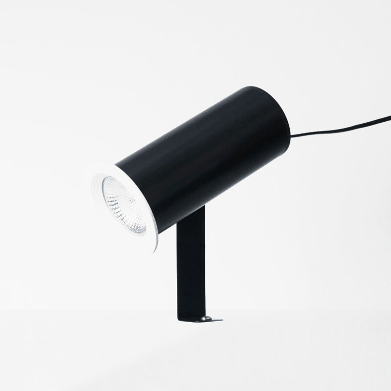 Faretto ideale per mostre itineranti, musei e presentazioni. Realizzato in metallo e plastica.